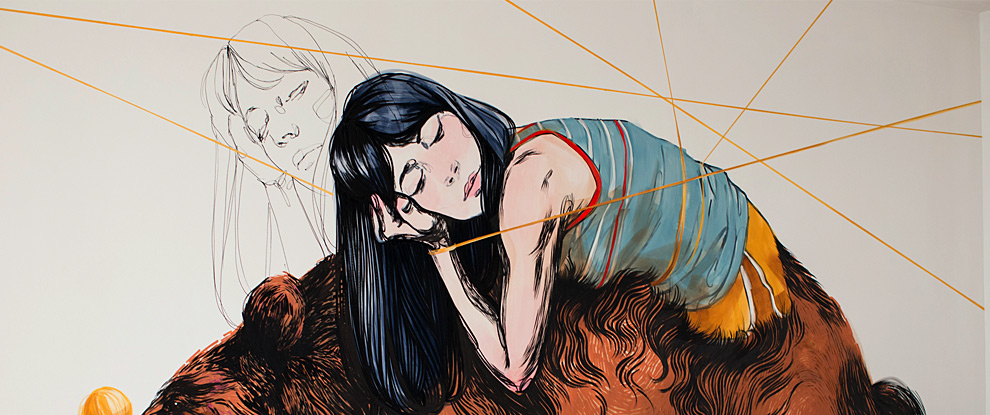 El mural de la habitación Lana ha sido creado por Paula Bonet especialmente para La Garriga de Castelladral.